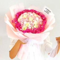 “다 잘될꺼야” 아르띠콜로 LED 장미 안개꽃 대형 꽃다발, 핑크